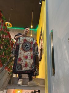Stuff: Silk stuff                                                                                                                                                                                                             Measurements:                                                                                                                                                                                                                           Small & medium both can wear this outfit . Not suit able for large